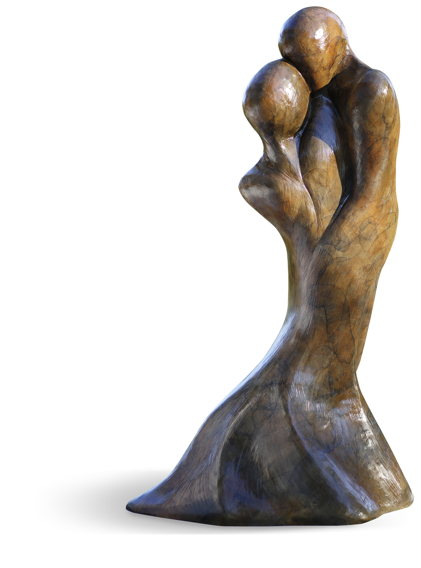 Who is supporting who? From one view she supports him, from the other view he supports her. Symbiotic and reciprocal, each supports the other. Of One is meant to be viewed in the round.
